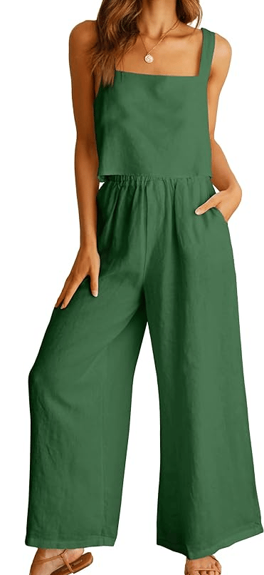 For a tropical getaway or a beach destination, embrace the vacation vibes with this two piece linen outfit. Giving a finished, effortless, relaxed look to your trip this outfit is comfortable and stylish. Choose a bold color to make a statement. Pair it with some sandals and a straw hat for the ultimate vacation look.